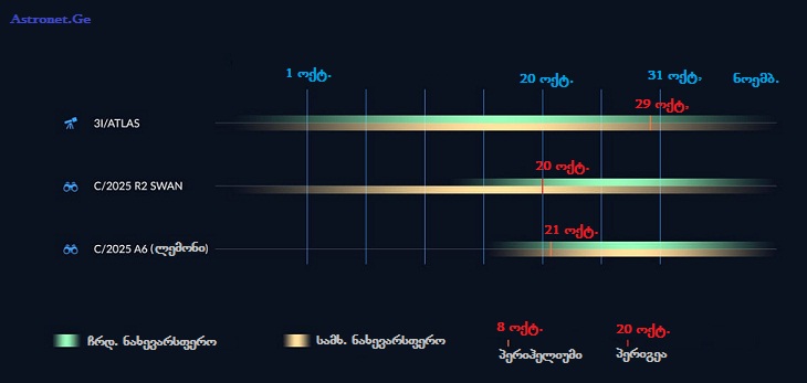 2025 წლის ოქტომბერი, კომეტებზე მონადირეთათვის ნამდვილი დღესასწაულია, რადგან მათ რამდენიმე განსხვავებულ კომეტაზე დაკვირვების საშუალება მიეცემათ.